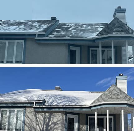Notre équipe réalise le déneigement de toiture résidentielle avec des techniques sécuritaires qui évitent d’endommager les bardeaux, la membrane ou la ventilation du toit. Nous intervenons rapidement après les tempêtes, lors des cycles de gel-dégel ou lorsque la charge de neige devient préoccupante.